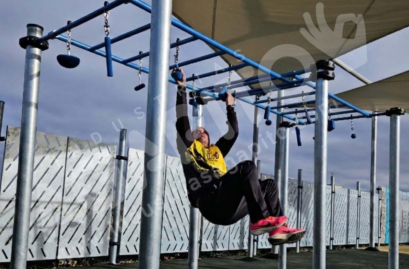 Este elemento propone un ejercicio dinámico en suspensión que permite trabajar de forma intensa la fuerza del tren superior, el core, la rapidez, la coordinación y la orientación, habilidades clave en este tipo de disciplinas. El avance por el braquiador exige control corporal y resistencia, convirtiendo el esfuerzo físico en un reto motivador y estimulante.