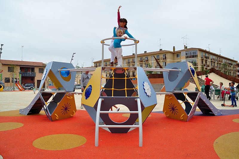 Outdoor games in the JUGA series are made with high-quality materials suitable for use in public squares and parks. They are manufactured entirely in Europe, ensuring the best finishes and maximum safety guaranteed by the German certification body TÜV-SÜD according to standard EN-1176.